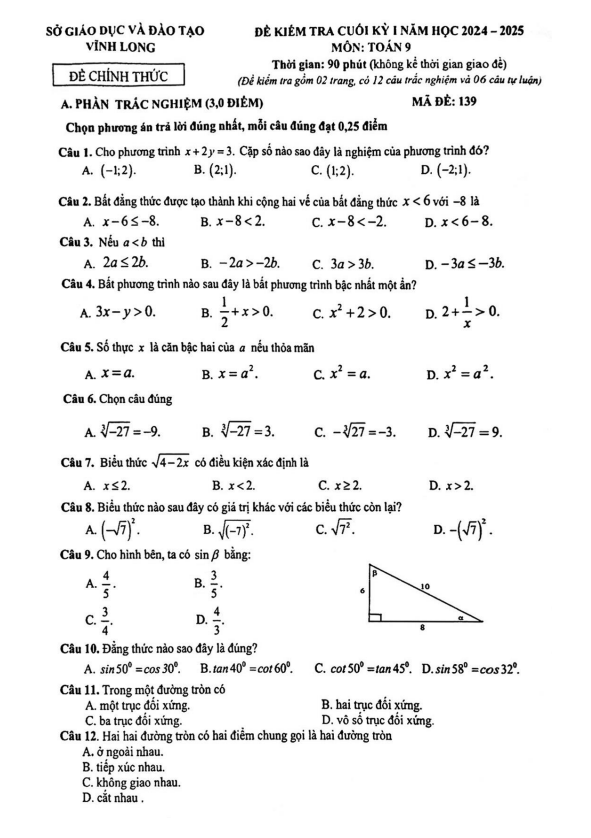 Đề Cương Ôn Tập Toán 9 Đề cương học kì 1 Toán 9 năm 2024 – 2025 trường THCS Thọ Lộc – Hà Nội 23/12/2024