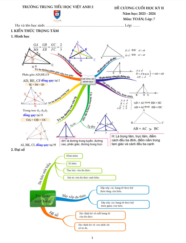 Đề Cương Ôn Tập Toán 7 Đề cương cuối học kỳ 2 Toán 7 năm 2023 – 2024 trường Việt Anh 2 – Bình Dương 15/04/2024