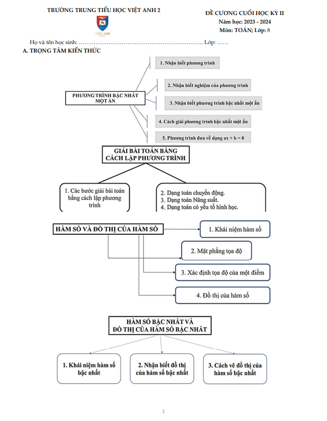 Đề Cương Ôn Tập Toán 8 Đề cương cuối học kỳ 2 Toán 8 năm 2023 – 2024 trường Việt Anh 2 – Bình Dương 15/04/2024
