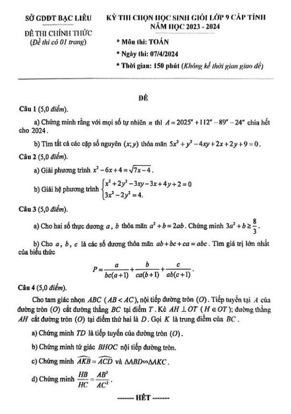 Đề Thi HSG Toán 8 Đề học sinh giỏi Toán 8 năm 2023 – 2024 phòng GD&ĐT Lương Tài – Bắc Ninh 14/04/2024