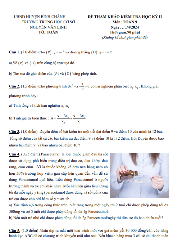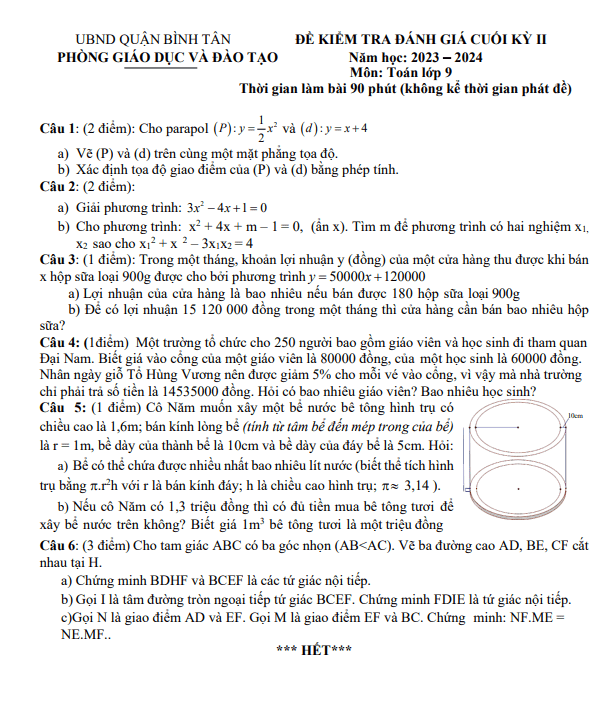 Đề Thi HK2 Toán 9 Đề tham khảo cuối kỳ 2 Toán 9 năm 2023 – 2024 phòng GD&ĐT Bình Tân – TP HCM 03/04/2024