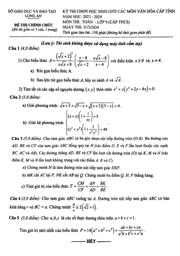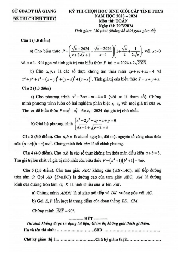 Đề Thi HSG Toán 8 Đề học sinh giỏi Toán 8 năm 2023 – 2024 phòng GD&ĐT Lục Ngạn – Bắc Giang 03/04/2024