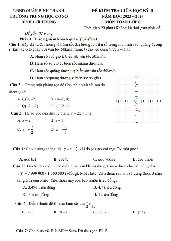 Đề Thi Giữa HK2 Toán 8 Bộ đề tham khảo giữa kì 2 Toán 8 năm 2023 – 2024 phòng GD&ĐT Bình Thạnh – TP HCM 19/03/2024