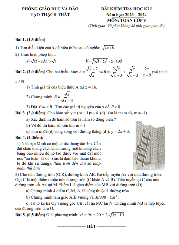 Đề Thi HK1 Toán 8 Đề cuối học kì 1 Toán 8 năm 2023 – 2024 phòng GD&ĐT Bố Trạch – Quảng Bình 11/01/2024