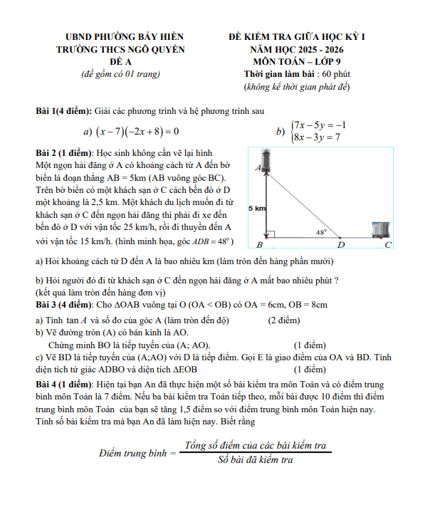 Đề giữa học kỳ 1 Toán 9 năm 2025 – 2026 trường THCS Ngô Quyền – TP HCM