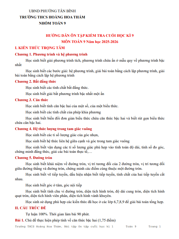 Tổng hợp ĐỀ CƯƠNG ÔN TẬP TOÁN 9 hướng dẫn nội dung ôn tập kiểm tra giữa học kì 1 / cuối học kì 1 / giữa học kì 2 / cuối học kì 2 môn Toán 9 (định dạng PDF + WORD), có đáp án và lời giải chi tiết.