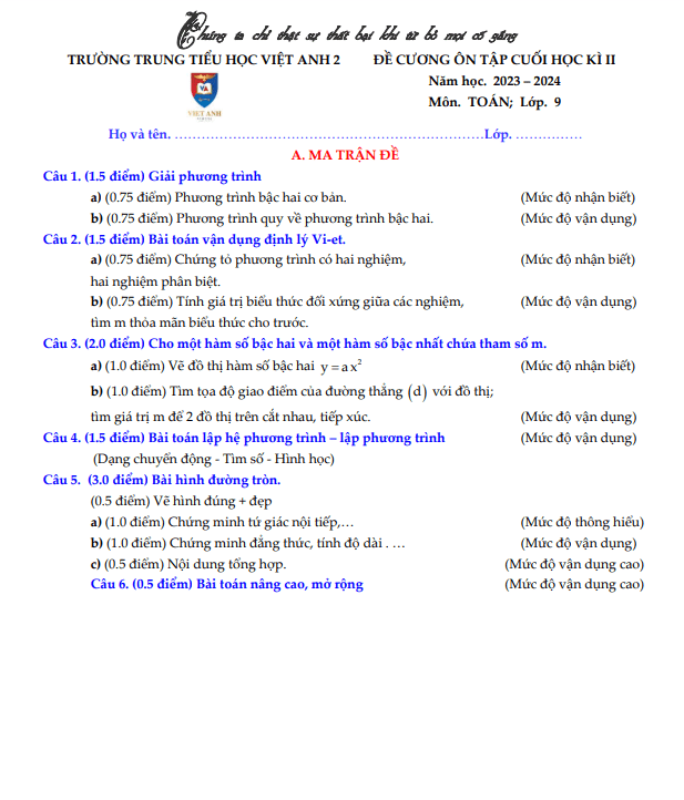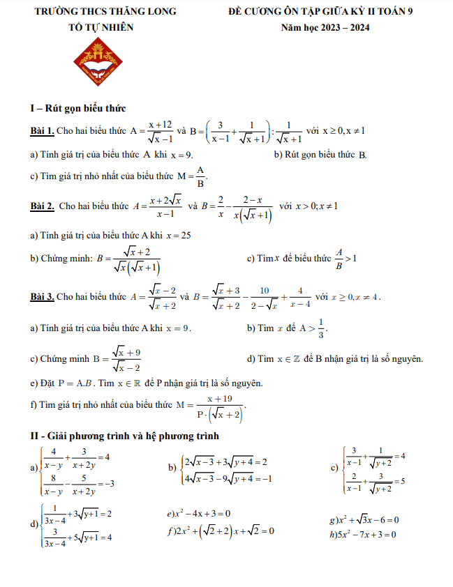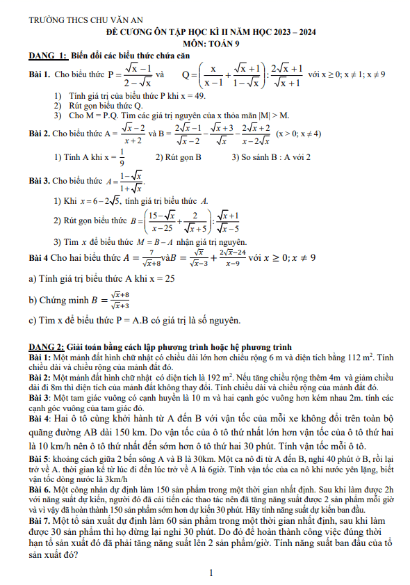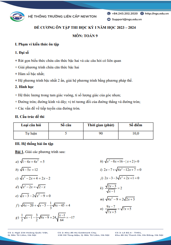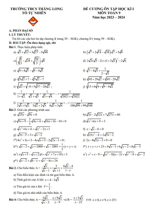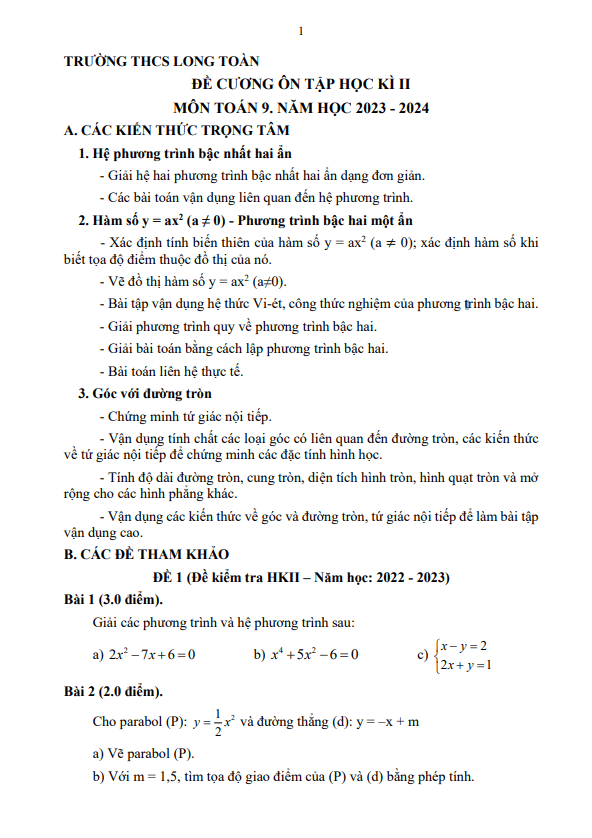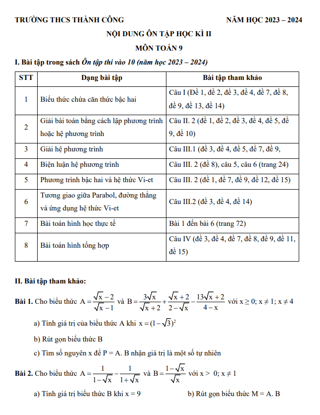 Tổng hợp ĐỀ CƯƠNG ÔN TẬP TOÁN 9 hướng dẫn nội dung ôn tập kiểm tra giữa học kì 1 / cuối học kì 1 / giữa học kì 2 / cuối học kì 2 môn Toán 9 (định dạng PDF + WORD), có đáp án và lời giải chi tiết.