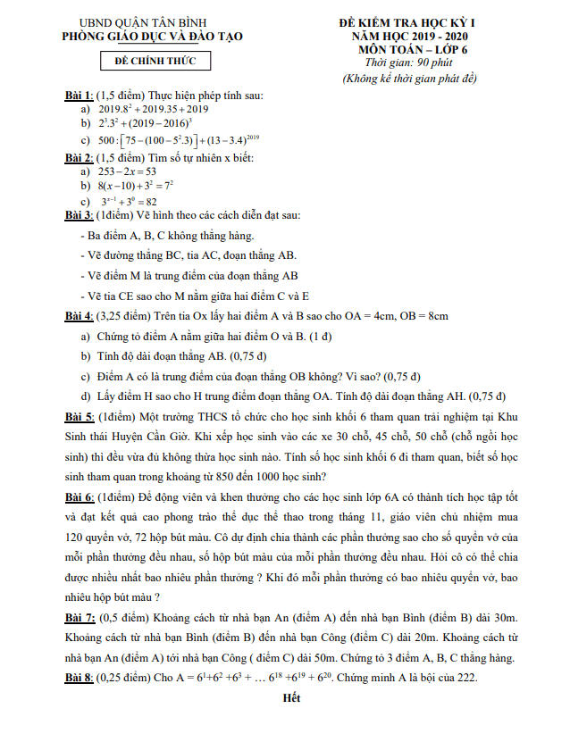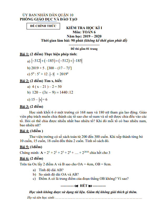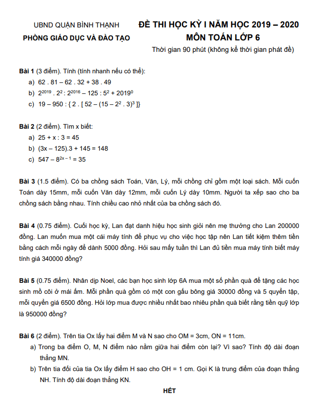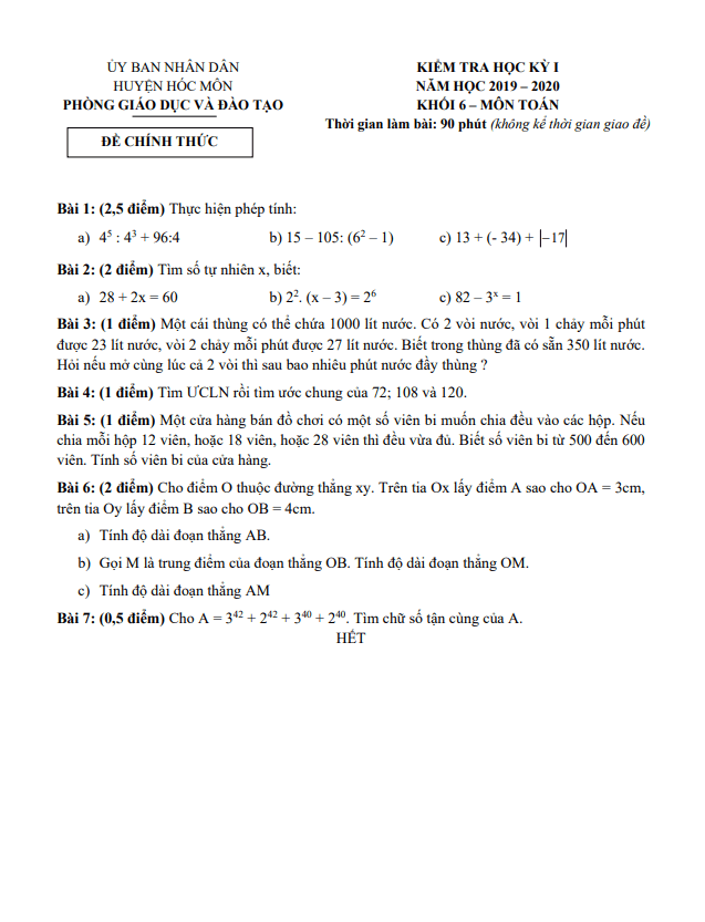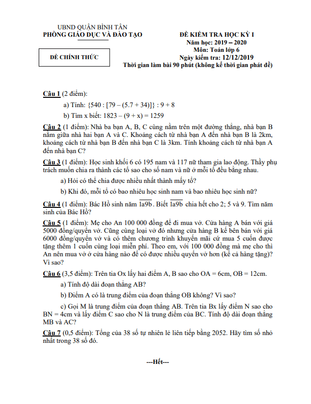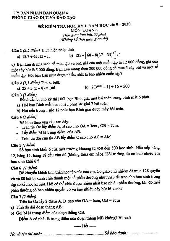 File WORD các ĐỀ THI CUỐI HỌC KÌ 1 TOÁN 6 (nếu có) được đính kèm trong nội dung bài viết, nhằm giúp quý thầy, cô giáo có thể tải xuống miễn phí, phục vụ cho quá trình biên soạn và giảng dạy. Quý thầy, cô giáo và bạn đọc có thể chia sẻ thêm ĐỀ THI CUỐI HỌC KÌ 1 TOÁN 6 bằng cách gửi về địa chỉ email: toanmath.com@gmail.com, nhằm tạo nguồn đề thi phong phú, đa dạng để các em học sinh lớp 6 tham khảo và rèn luyện.
