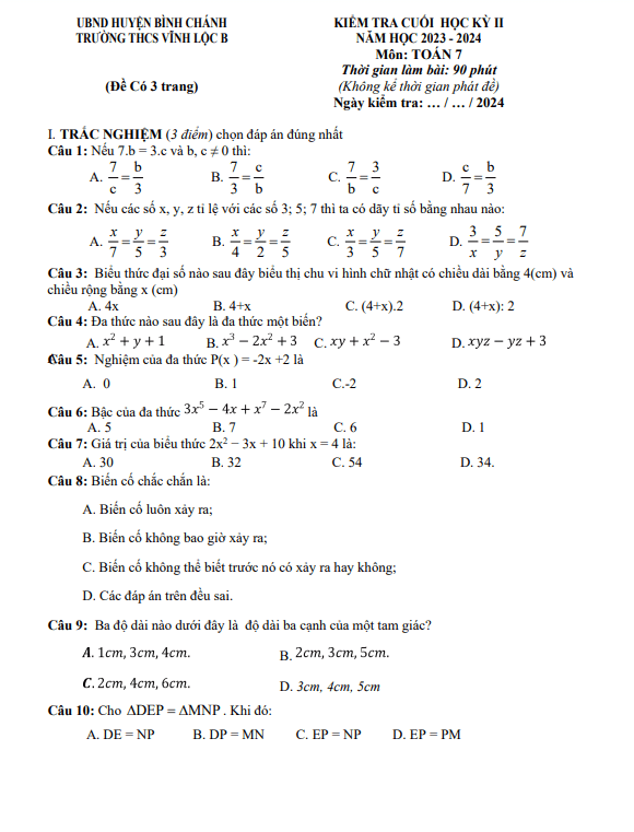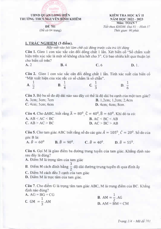 File WORD các ĐỀ THI CUỐI HỌC KÌ 2 TOÁN 7 (nếu có) được đính kèm trong nội dung bài viết, nhằm giúp quý thầy, cô giáo có thể tải xuống miễn phí, phục vụ cho quá trình biên soạn và giảng dạy. Quý thầy, cô giáo và bạn đọc có thể chia sẻ thêm ĐỀ THI CUỐI HỌC KÌ 2 TOÁN 7 bằng cách gửi về địa chỉ email: toanmath.com@gmail.com, nhằm tạo nguồn đề thi phong phú, đa dạng để các em học sinh lớp 7 tham khảo và rèn luyện.