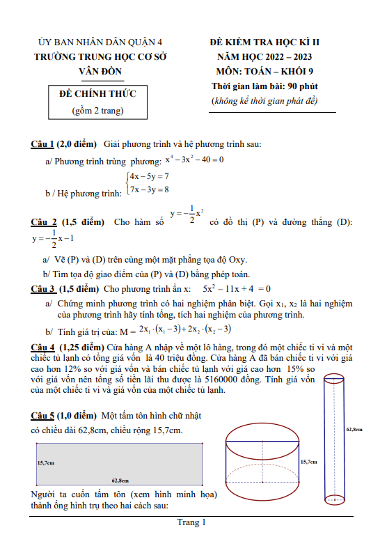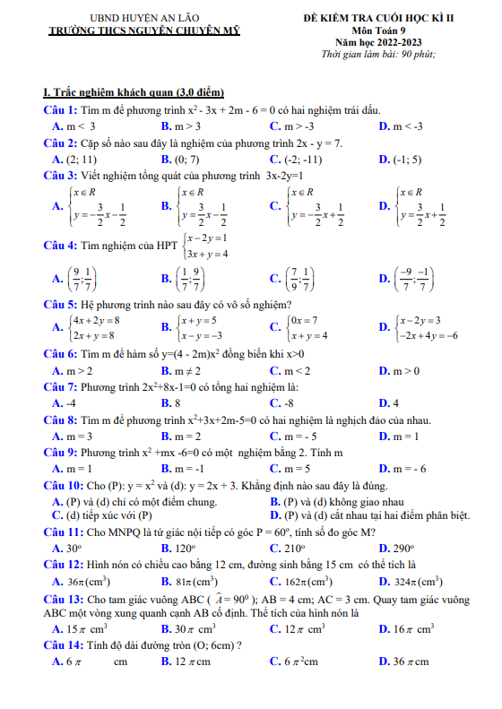 File WORD các ĐỀ THI CUỐI HỌC KÌ 2 TOÁN 9 (nếu có) được đính kèm trong nội dung bài viết, nhằm giúp quý thầy, cô giáo có thể tải xuống miễn phí, phục vụ cho quá trình biên soạn và giảng dạy. Quý thầy, cô giáo và bạn đọc có thể chia sẻ thêm ĐỀ THI CUỐI HỌC KÌ 2 TOÁN 9 bằng cách gửi về địa chỉ email: toanmath.com@gmail.com, nhằm tạo nguồn đề thi phong phú, đa dạng để các em học sinh lớp 9 tham khảo và rèn luyện.