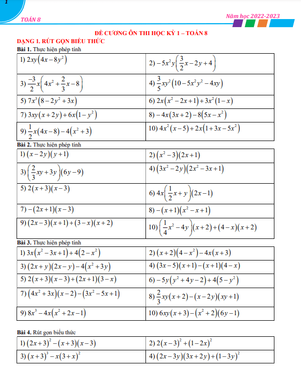 Đề cương ôn thi học kỳ 1 Toán 8 năm học 2022 – 2023