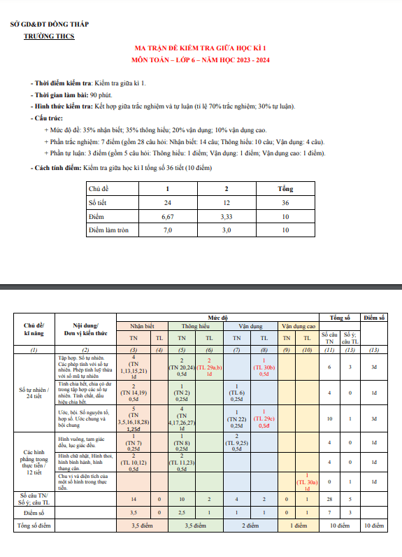 Đề tham khảo giữa kì 1 Toán 6 năm 2023 – 2024 sở GD&ĐT Đồng Tháp