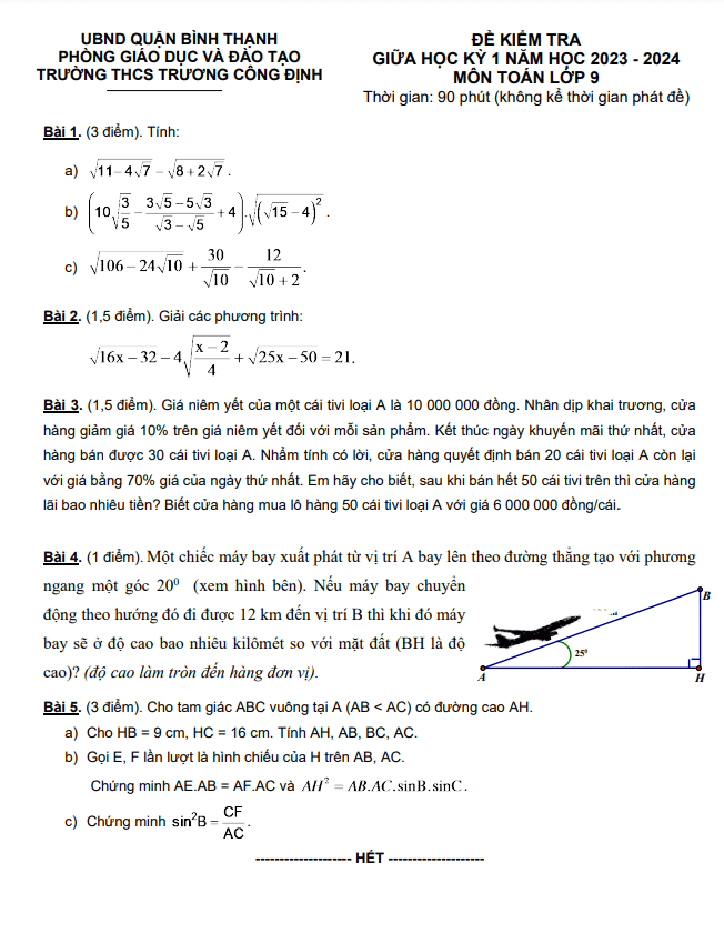 Đề Thi Giữa HK1 Toán 9
