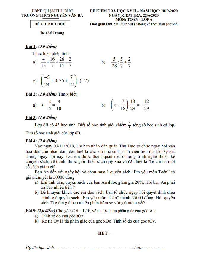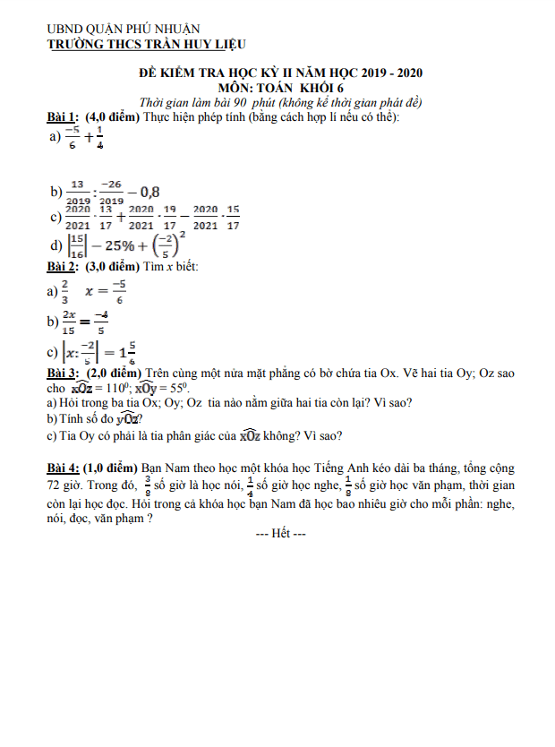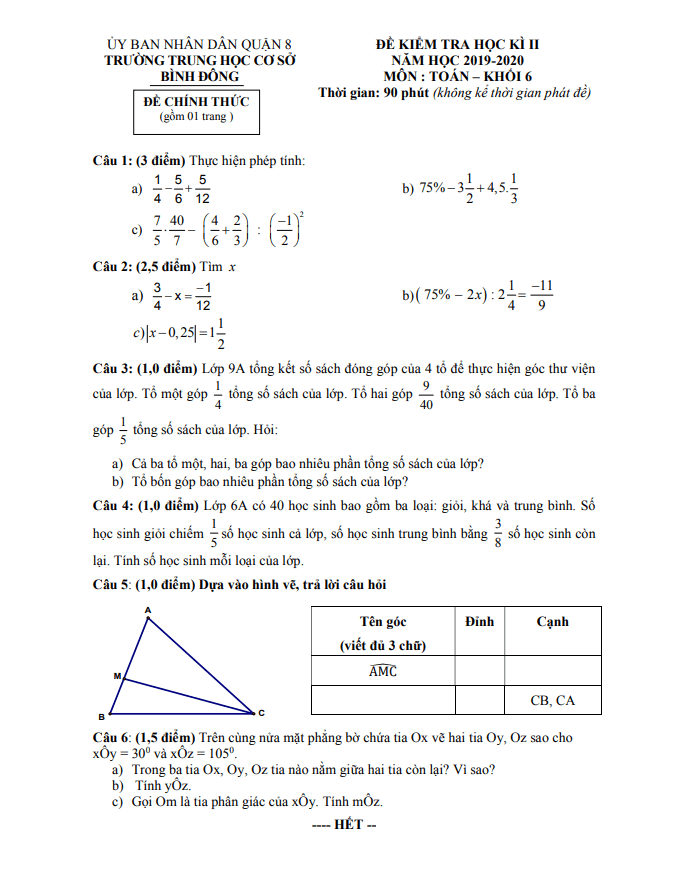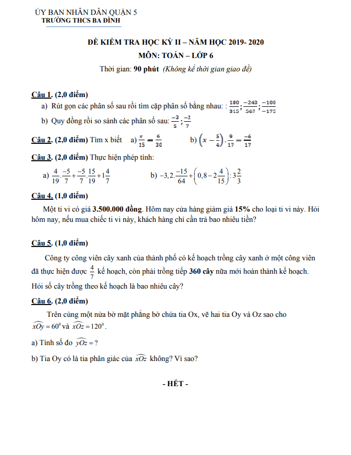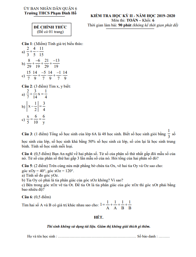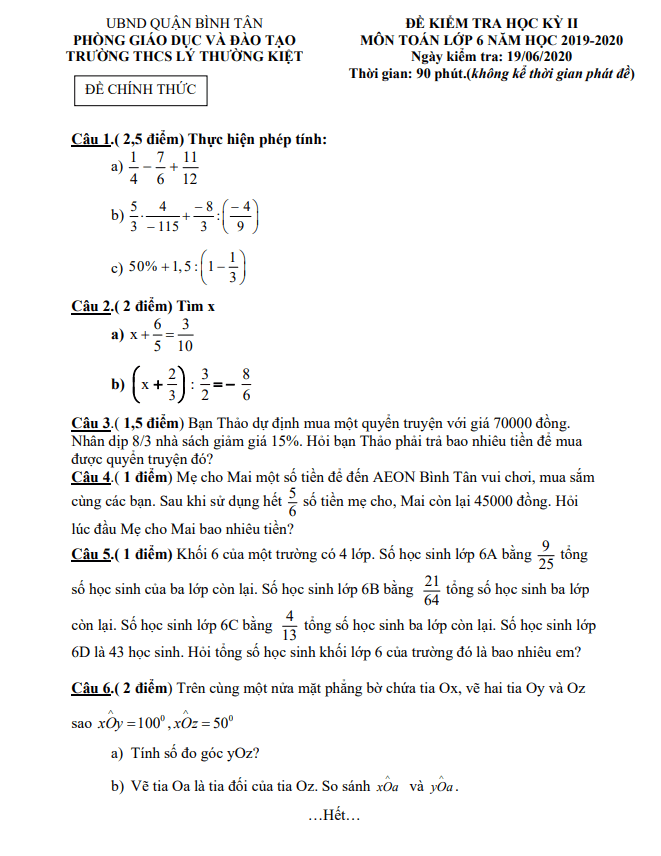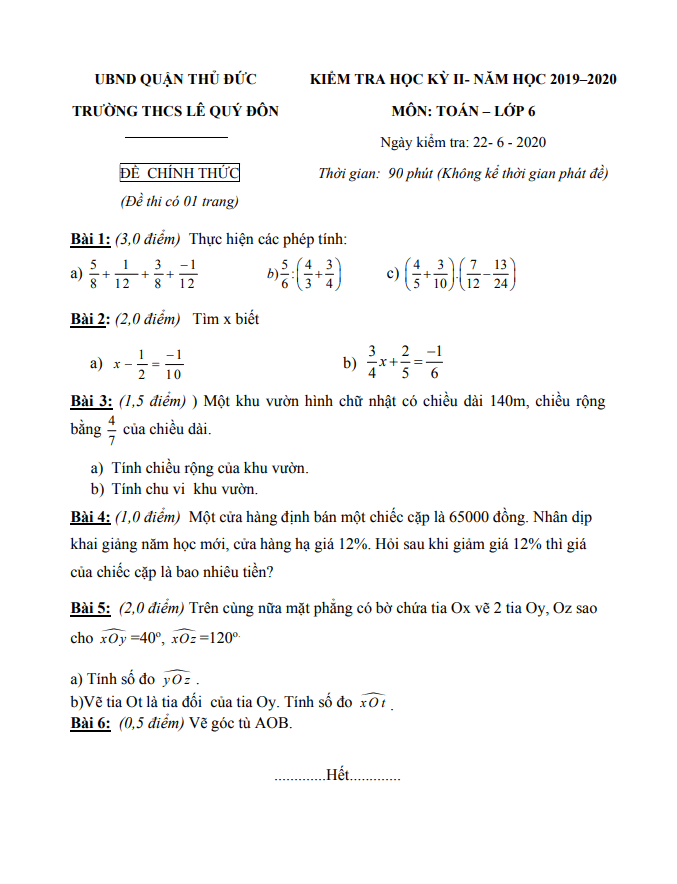 File WORD các ĐỀ THI CUỐI HỌC KÌ 2 TOÁN 6 (nếu có) được đính kèm trong nội dung bài viết, nhằm giúp quý thầy, cô giáo có thể tải xuống miễn phí, phục vụ cho quá trình biên soạn và giảng dạy. Quý thầy, cô giáo và bạn đọc có thể chia sẻ thêm ĐỀ THI CUỐI HỌC KÌ 2 TOÁN 6 bằng cách gửi về địa chỉ email: toanmath.com@gmail.com, nhằm tạo nguồn đề thi phong phú, đa dạng để các em học sinh lớp 6 tham khảo và rèn luyện.