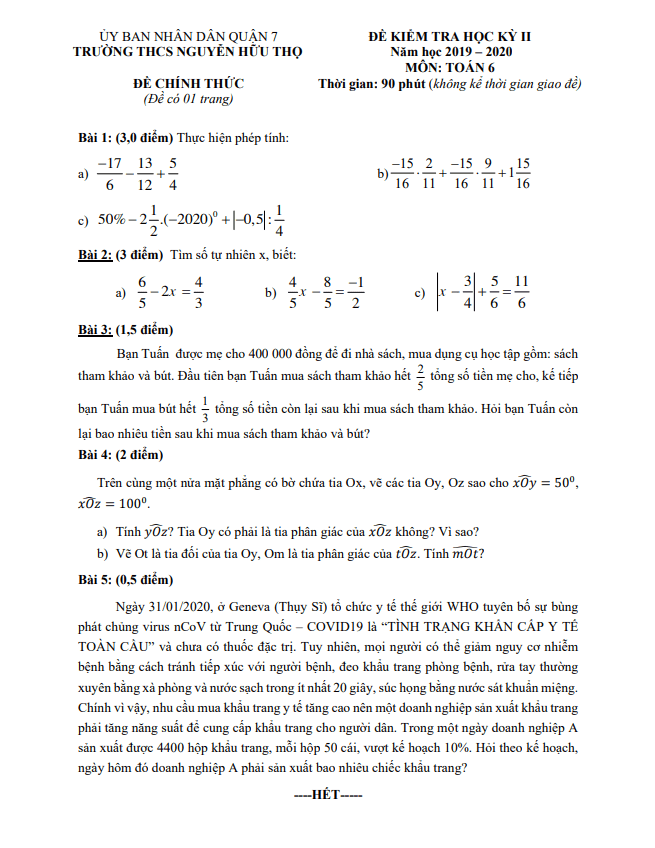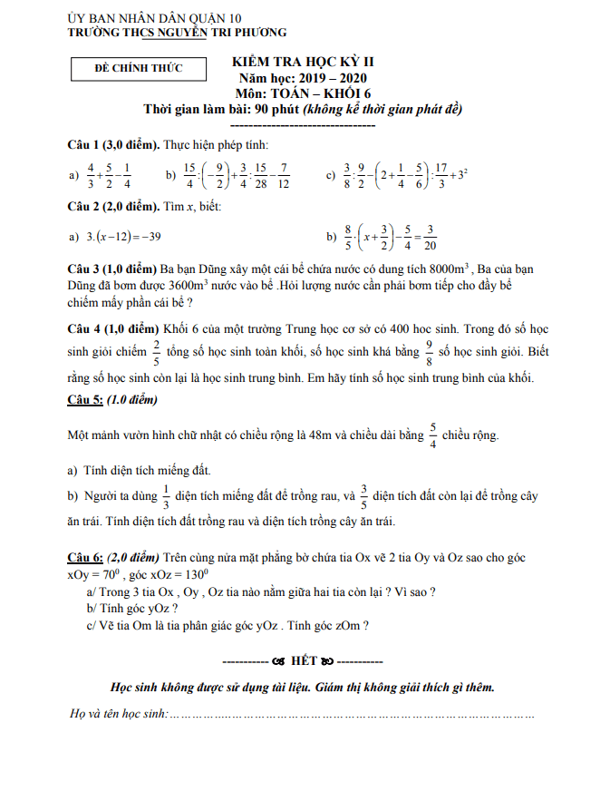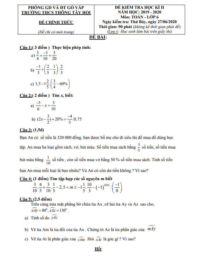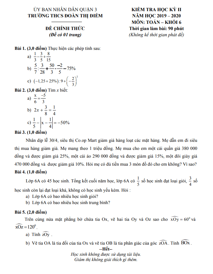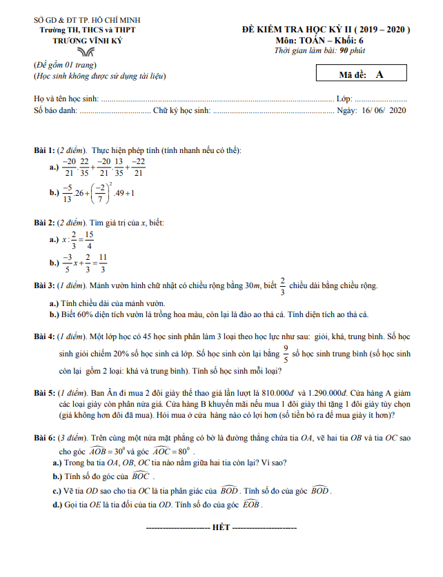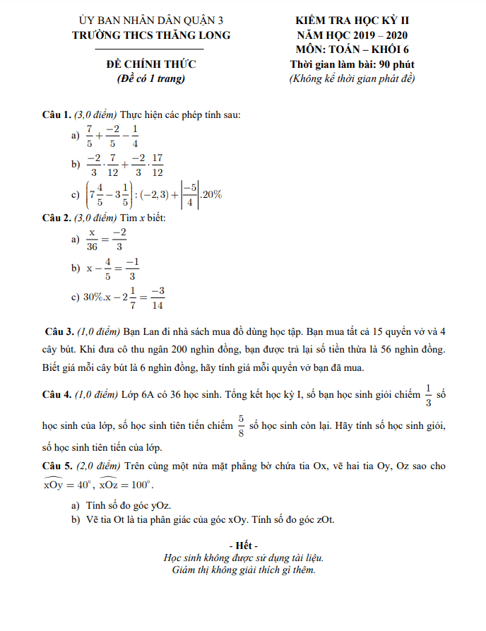 File WORD các ĐỀ THI CUỐI HỌC KÌ 2 TOÁN 6 (nếu có) được đính kèm trong nội dung bài viết, nhằm giúp quý thầy, cô giáo có thể tải xuống miễn phí, phục vụ cho quá trình biên soạn và giảng dạy. Quý thầy, cô giáo và bạn đọc có thể chia sẻ thêm ĐỀ THI CUỐI HỌC KÌ 2 TOÁN 6 bằng cách gửi về địa chỉ email: toanmath.com@gmail.com, nhằm tạo nguồn đề thi phong phú, đa dạng để các em học sinh lớp 6 tham khảo và rèn luyện.