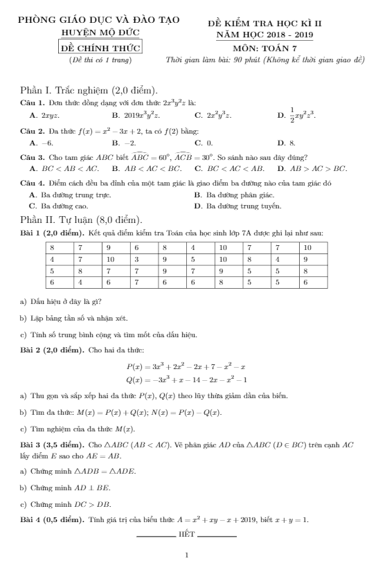 File WORD các ĐỀ THI CUỐI HỌC KÌ 2 TOÁN 7 (nếu có) được đính kèm trong nội dung bài viết, nhằm giúp quý thầy, cô giáo có thể tải xuống miễn phí, phục vụ cho quá trình biên soạn và giảng dạy. Quý thầy, cô giáo và bạn đọc có thể chia sẻ thêm ĐỀ THI CUỐI HỌC KÌ 2 TOÁN 7 bằng cách gửi về địa chỉ email: toanmath.com@gmail.com, nhằm tạo nguồn đề thi phong phú, đa dạng để các em học sinh lớp 7 tham khảo và rèn luyện.