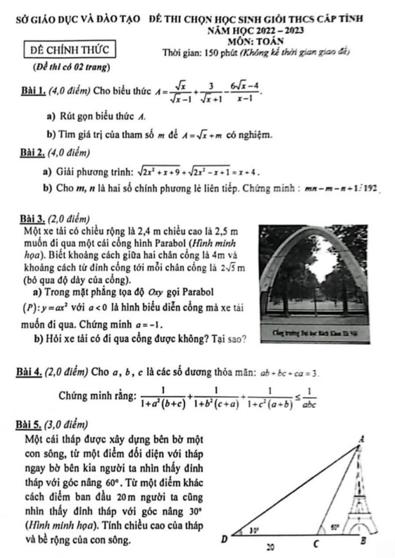 Đề học sinh giỏi cấp tỉnh Toán THCS năm 2022 – 2023 sở GD&ĐT Sơn La