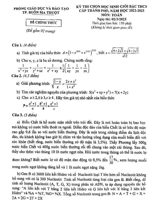 Đề thi HSG Toán THCS năm 2022 – 2023 phòng GD&ĐT Buôn Ma Thuột – Đắk Lắk