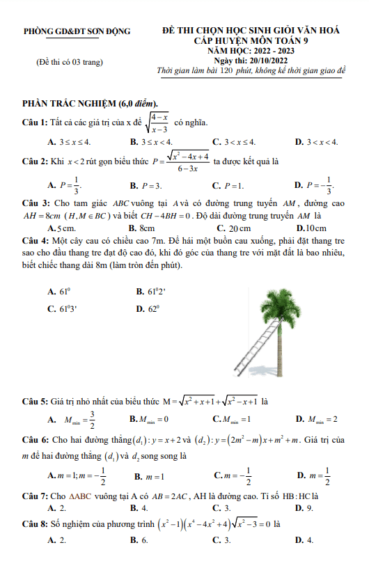 Đề thi HSG Toán 9 cấp huyện năm 2022 – 2023 phòng GD&ĐT Sơn Động – Bắc Giang