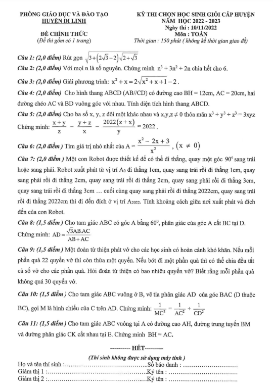 Đề học sinh giỏi huyện môn Toán năm 2022 – 2023 phòng GD&ĐT Di Linh – Lâm Đồng