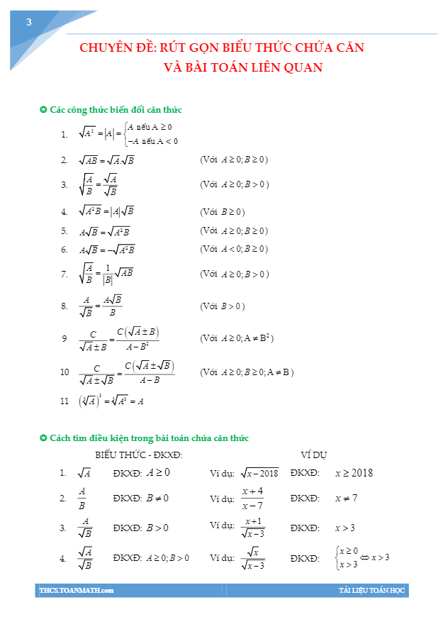 Chuyên đề rút gọn biểu thức chứa căn và bài toán liên quan