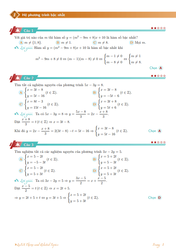 487 bài toán hệ phương trình bậc nhất và phương trình bậc hai
