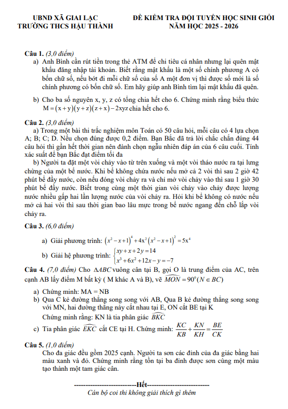 Đề Thi HSG Toán 9 Đề thi thử HSG Toán 9 lần 1 năm 2025 – 2026 trường THCS Mã Thành – Nghệ An 05/10/2025